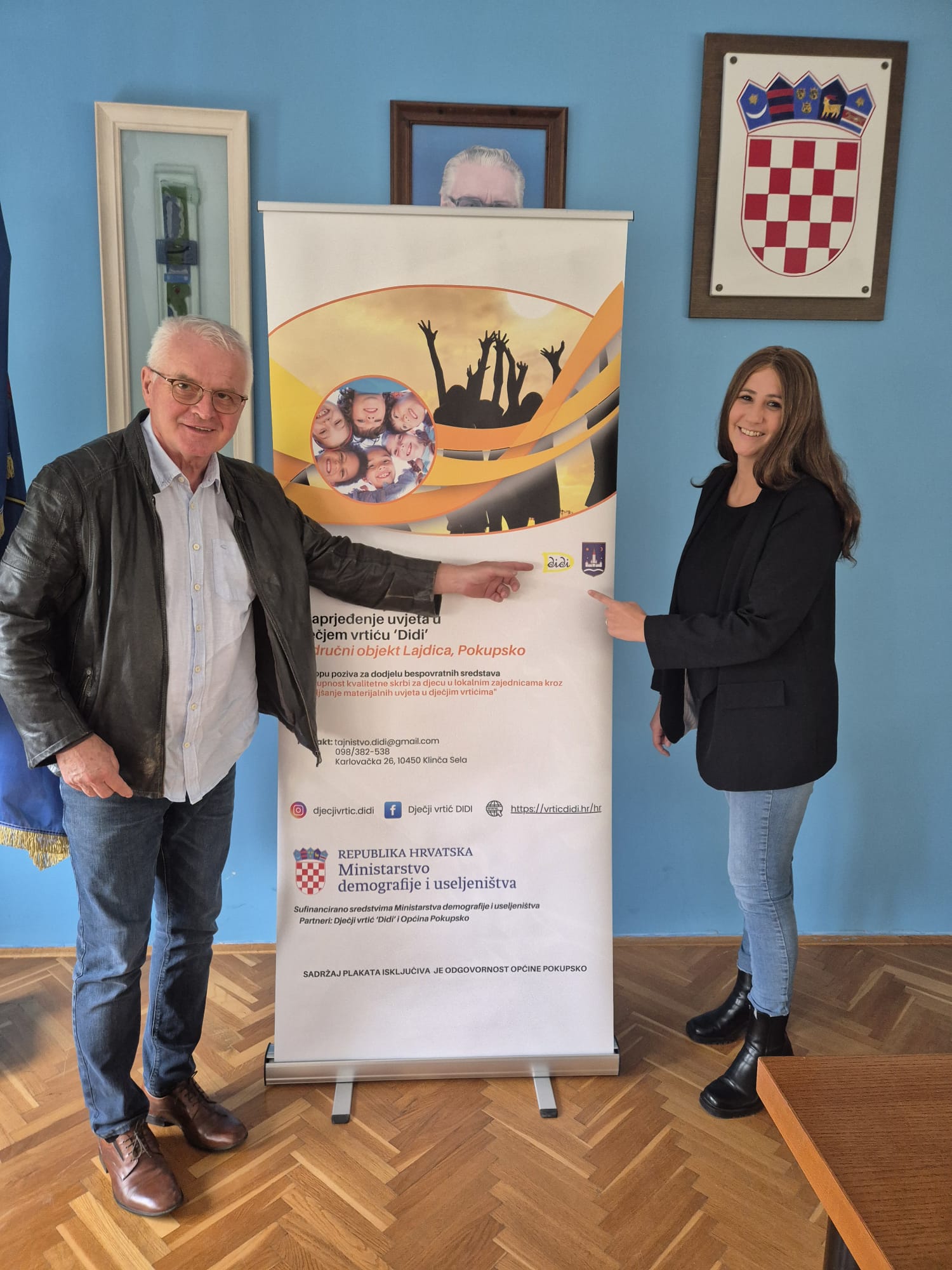Dječji vrtić DIDI u partnerstvu s Općinom Pokupsko, kao prijaviteljem i korisnikom sredstava, prijavio je i ostvario pravo na bespovratna sredstva Ministarstva demografije i useljeništva u sklopu javnog poziva „Dostupnost kvalitetne skrbi za djecu u lokalnim zajednicama kroz poboljšanje materijalnih uvjeta u dječjim vrtićima“.